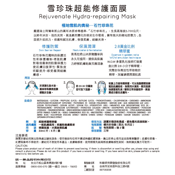 【我的美麗日記】雪珍珠超能修護面膜(5片/盒)雪珍珠超能修護Face Mask & PacksMIPA 生活百貨