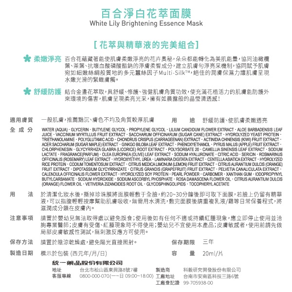 【我的美麗日記】百合淨白花萃面膜(7片/盒)百合淨白花萃Face Mask & PacksMIPA 生活百貨