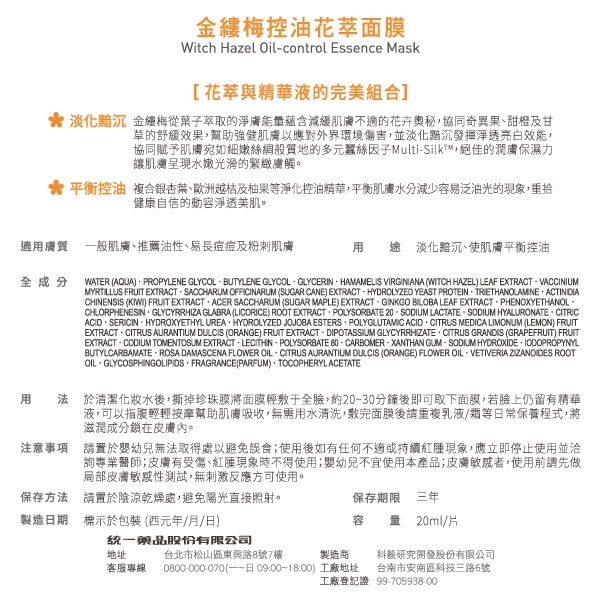 【我的美麗日記】金縷梅控油花萃面膜(7片/盒)金縷梅控油花萃Face Mask & PacksMIPA 生活百貨
