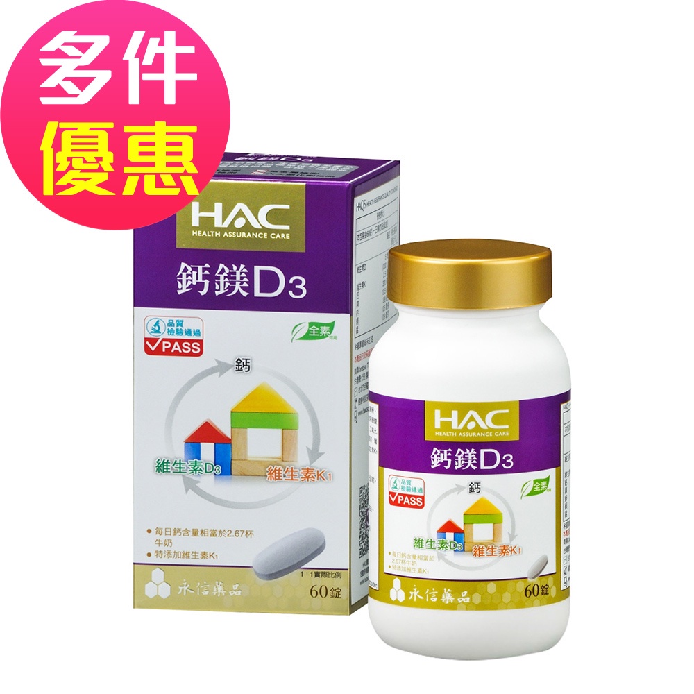 【永信HAC】鈣鎂D3綜合錠(60錠/瓶)-全素60錠x1瓶|60錠x2瓶|60錠x4瓶Well BeingMIPA 生活百貨