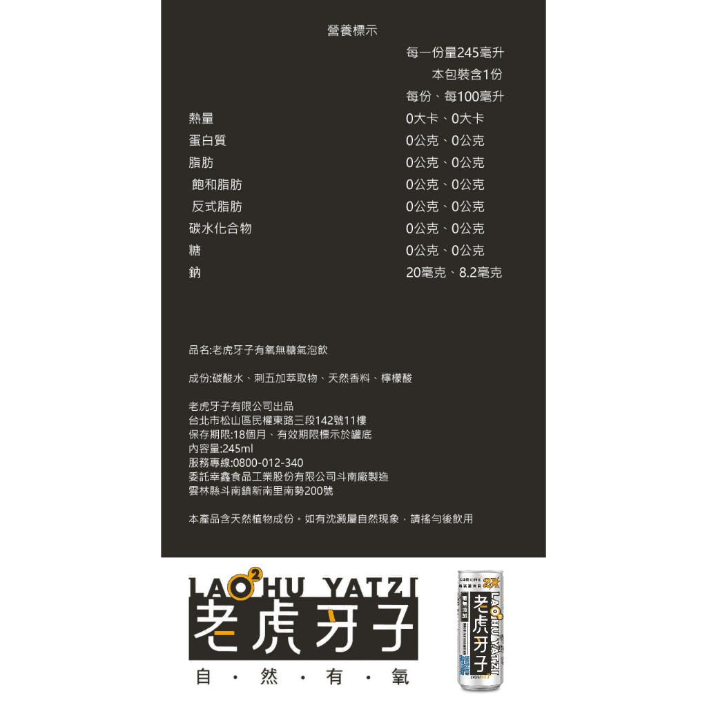 老虎牙子 有氧無糖氣泡飲2X 245ml(24罐/箱) 2箱以上請選宅配24瓶/箱Carbonated Drinks & TonicsMIPA 生活百貨