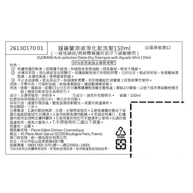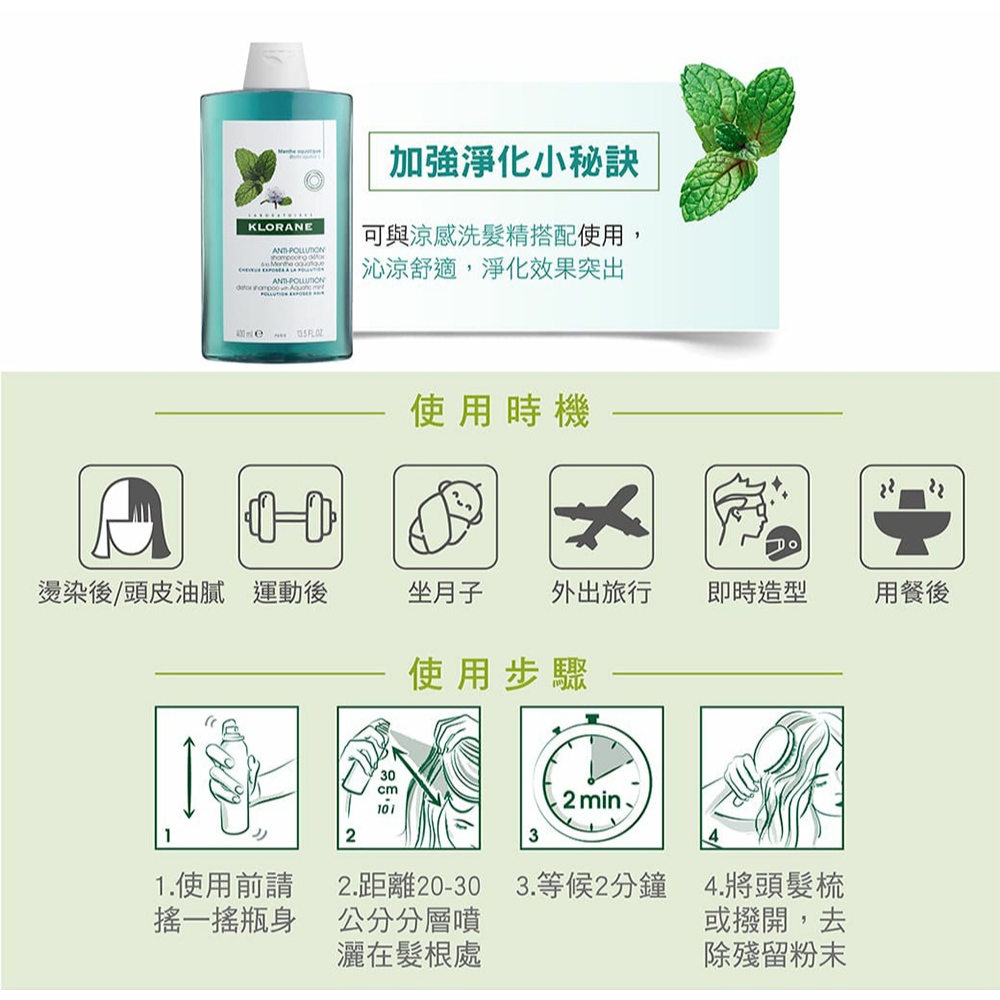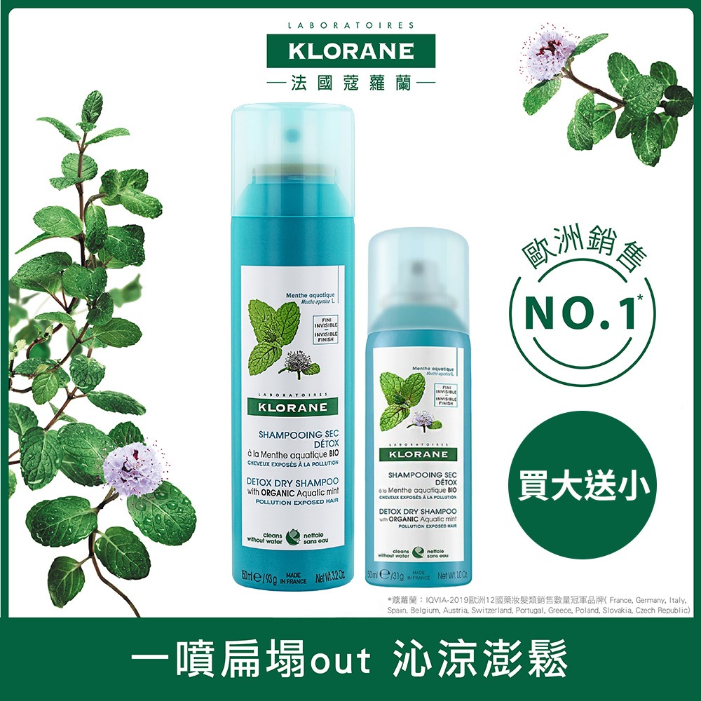 Klorane蔻蘿蘭 涼感淨化乾洗髮噴霧(150ml/瓶)加贈50ml乾洗髮噴霧150ml+50mlHair TreatmentMIPA 生活百貨
