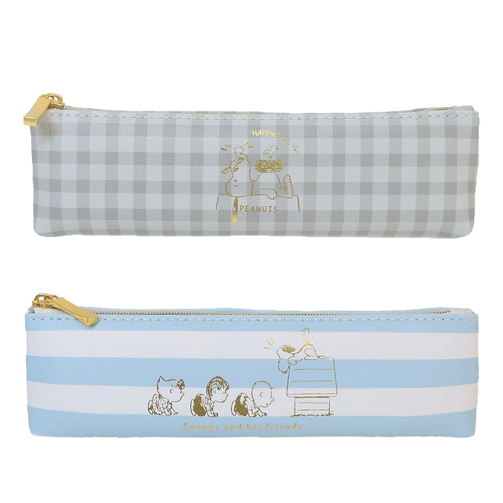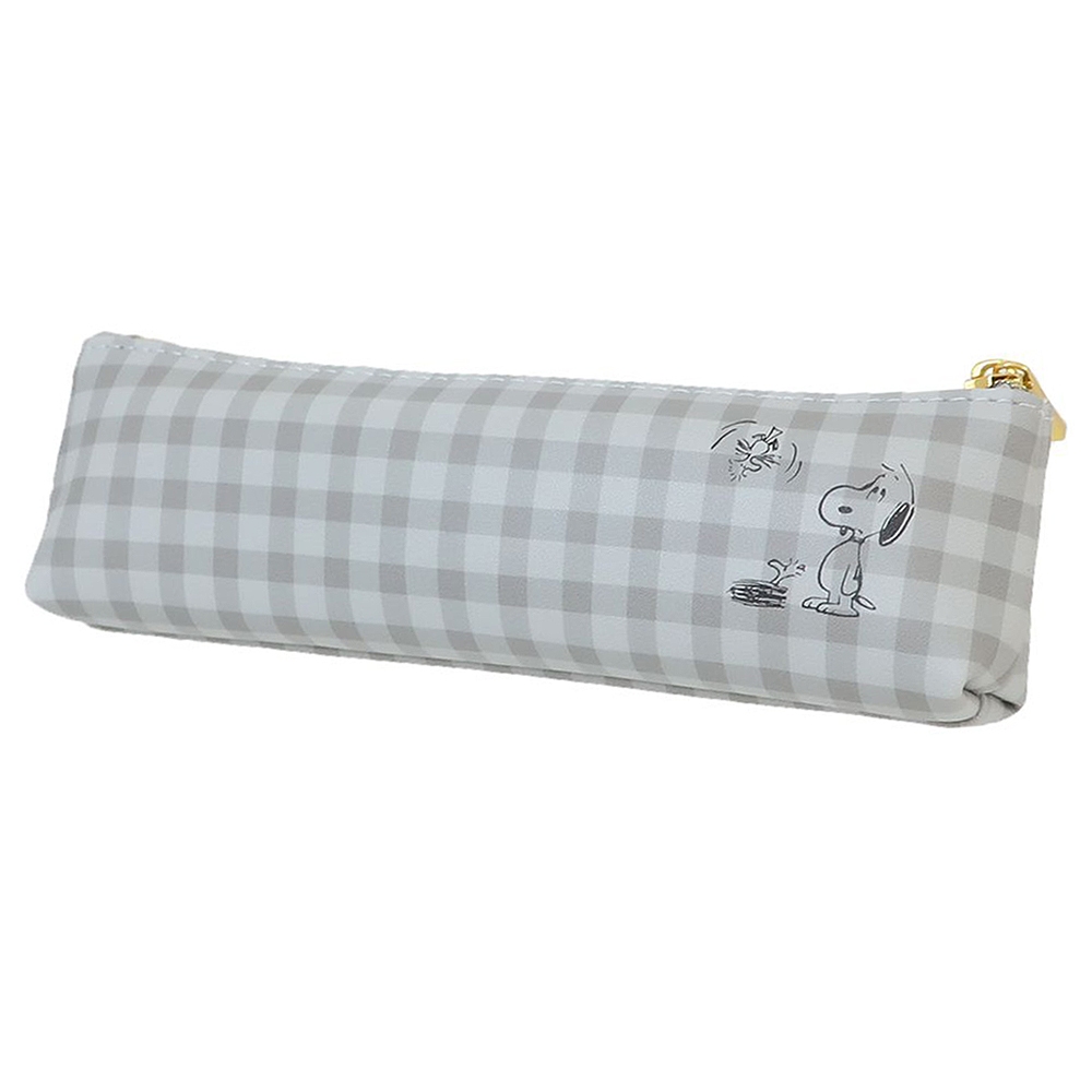 Kamio Snoopy 史努比 輕巧型皮質三角筆袋灰調格紋|海洋格紋Pencil Casesfun box 玩具旗艦館