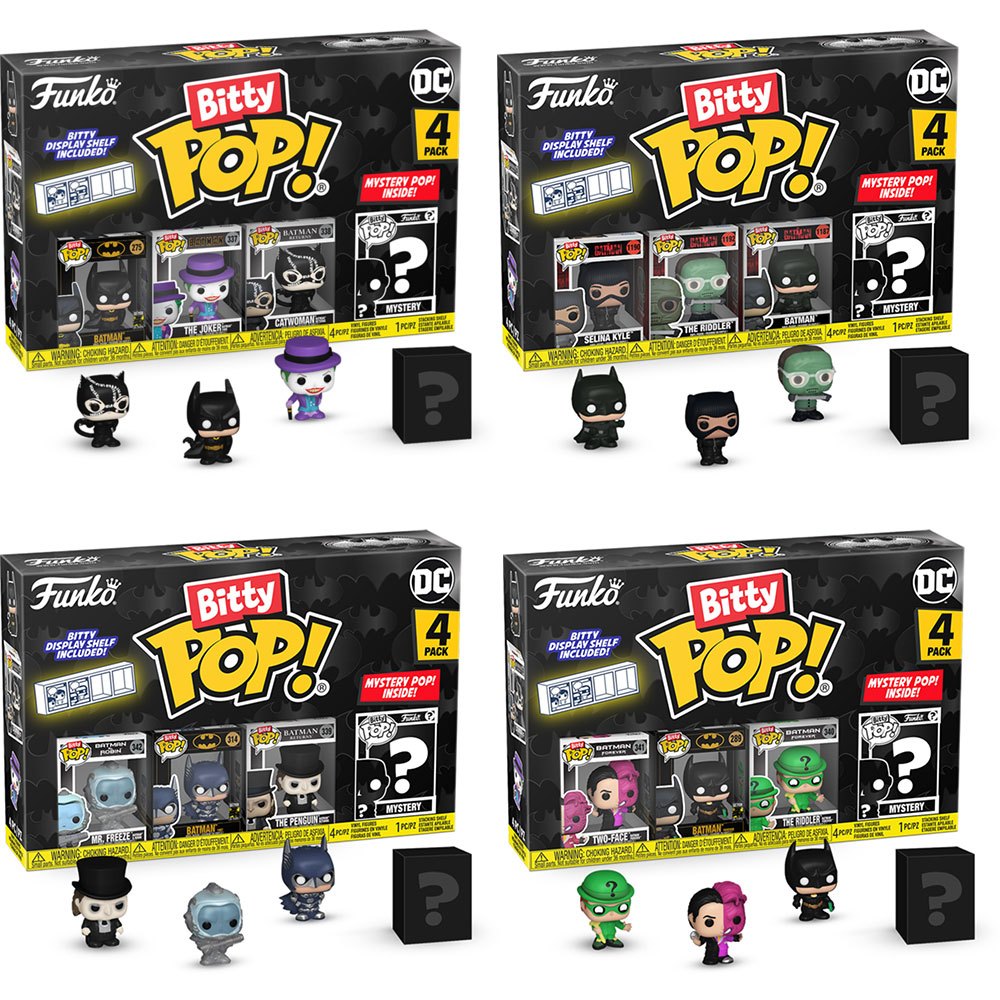 Bitty POP:蝙蝠俠85周年 4入組 (隨機出貨)蝙蝠俠|貓女|急凍人|雙面人Action Figurinesfun box 玩具旗艦館