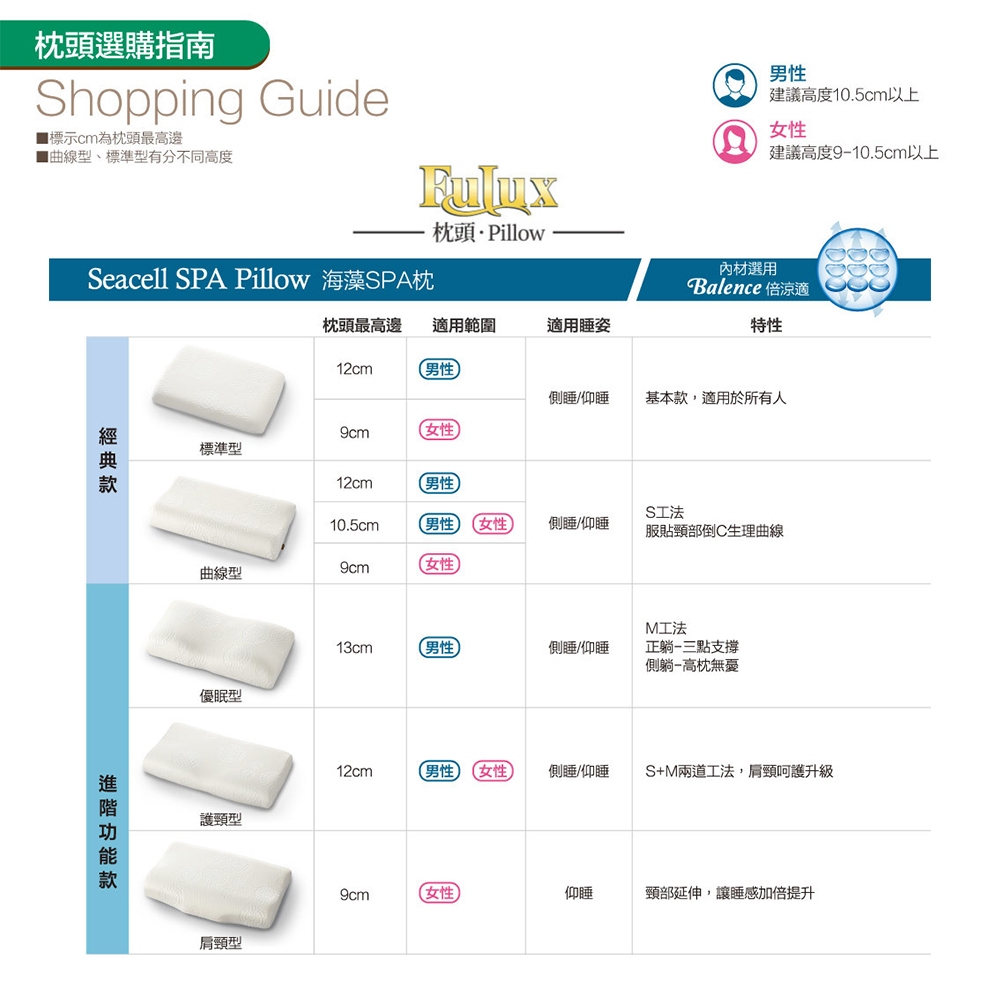 【Fulux 弗洛克】海藻SPA標準型記憶枕 買1枕送1抱枕 100D密度 抗菌防螨 MIT台灣製造 官方直營店(福利品,紙箱損傷)高度12cm|高度12cm|高度9cmPillowsFulux 弗洛克 官方旗艦店