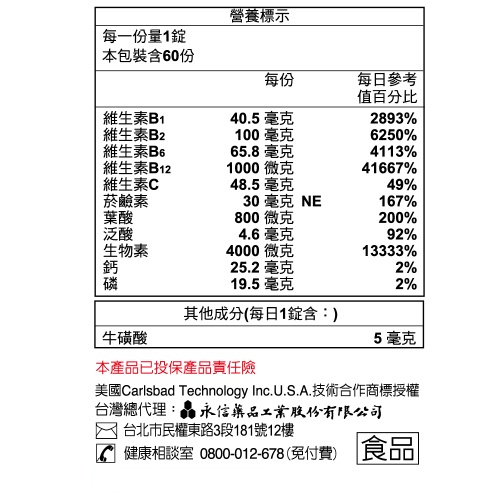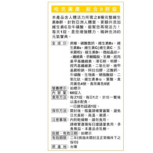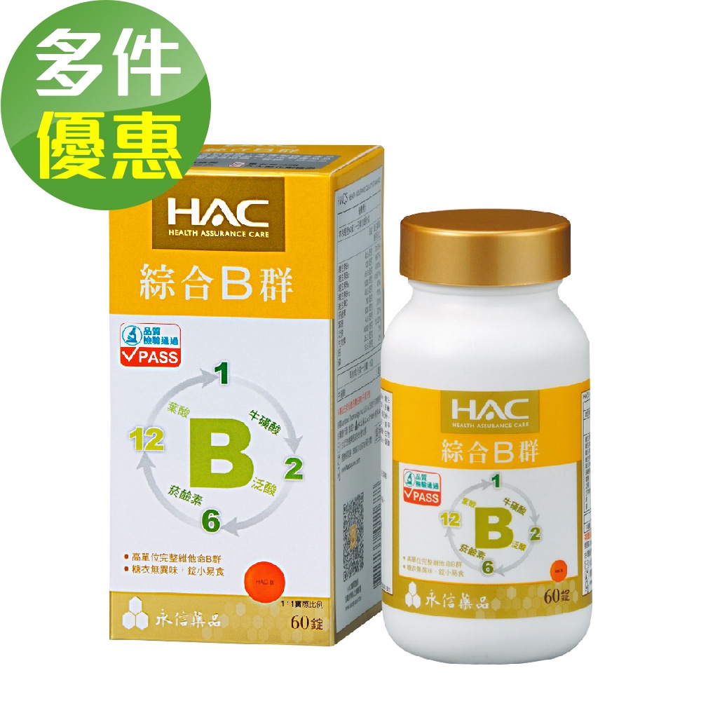 永信HAC 綜合B群錠(60錠/瓶)-B群+牛磺酸 精神旺盛60錠x2瓶|60錠x4瓶|60錠x1瓶Well BeingMIPA 生活百貨