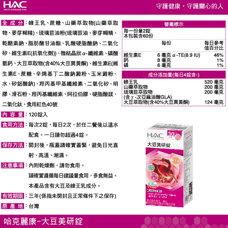 【永信HAC】大豆美研錠(120錠/瓶)120錠x1瓶|120錠x2瓶|120錠x4瓶Beauty SupplementsMIPA 生活百貨