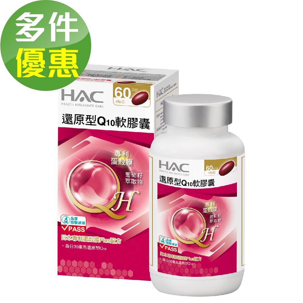 【永信HAC】還原型Q10軟膠囊(60粒/瓶)-日本專利蛋殼膜Plus配方60粒x1瓶(2025/11/30到期)|60粒x2瓶(2025/11/30到期)|60粒x4瓶(2025/11/30到期)Beauty SupplementsMIPA 生活百貨
