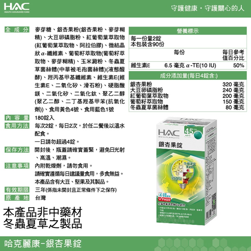【永信HAC】銀杏果錠(180錠/瓶)180錠x1瓶|180錠x2瓶|180錠x4瓶Well BeingMIPA 生活百貨