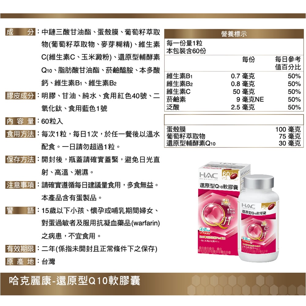 【永信HAC】還原型Q10軟膠囊(60粒/瓶)-日本專利蛋殼膜Plus配方