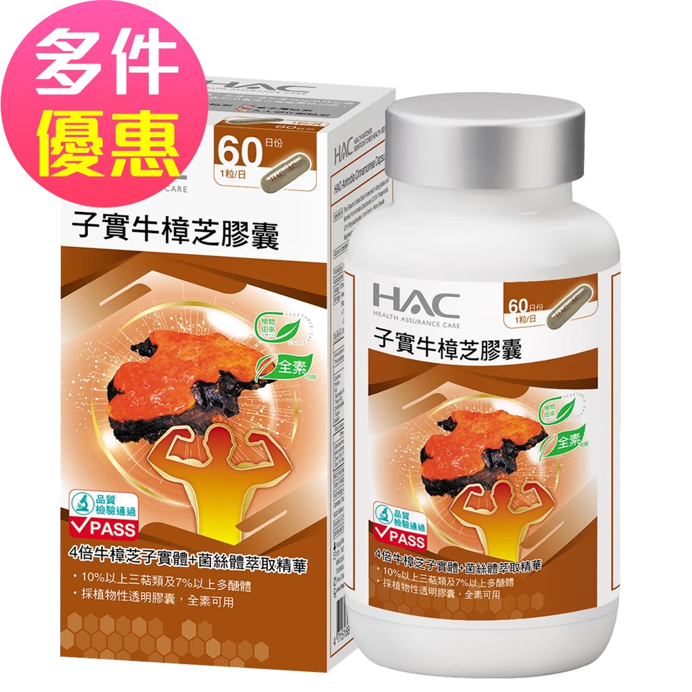 【永信HAC】高濃縮子實牛樟芝膠囊(60粒/瓶)60粒x1瓶|60粒x2瓶|60粒x4瓶Well BeingMIPA 生活百貨