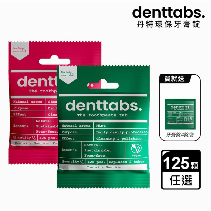 【丹特一錠淨Denttabs】環保旅行牙膏 含氟牙膏錠-草莓/薄荷(125顆/包)薄荷口味(贈牙膏錠4錠)|草莓口味(贈牙膏錠4錠)Oral CareMIPA 生活百貨