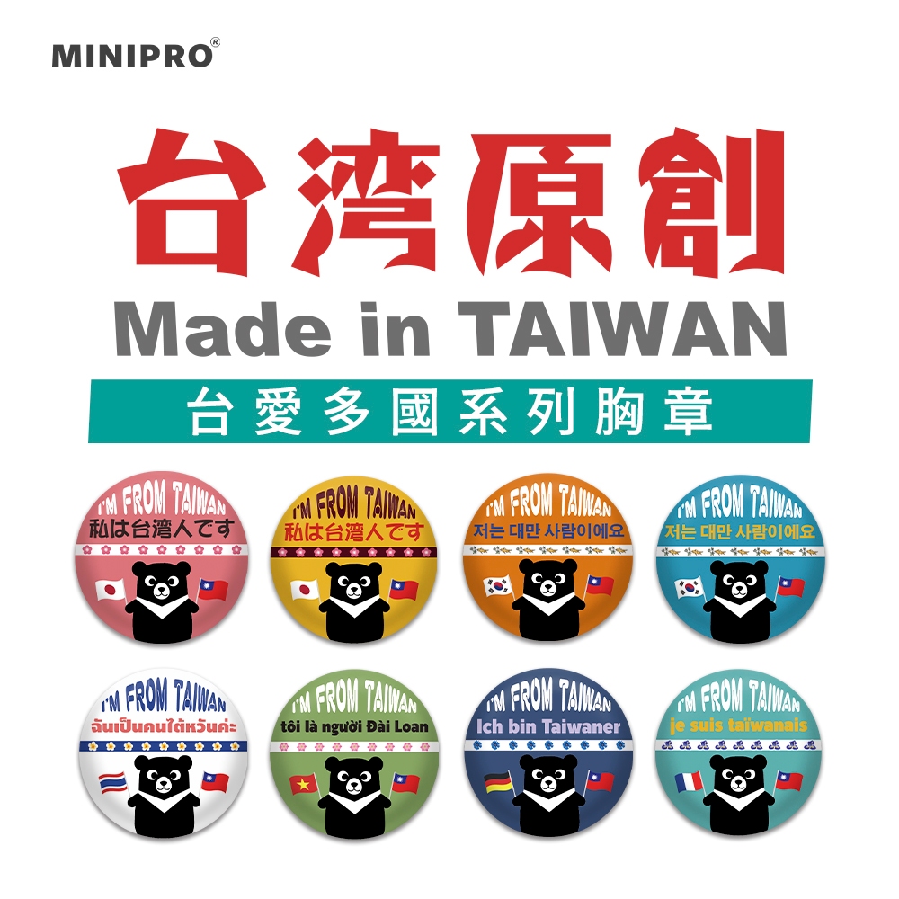MINIPRO台灣 我是台灣人胸章 台灣徽章 TAIWAN胸章 國籍識別【愛台加碼送貼紙】國旗 台灣胸章 出國必備A.台灣熊讚啦|買就送無痕貼紙|B.我是台灣人|買就送無痕貼紙|C.我從台灣來|買就送無痕貼紙|D.就是愛台灣|買就送無痕貼紙|E.正港台灣人|買就送無痕貼紙|F.台灣的驕傲|買就送無痕貼紙|G.台灣的國旗|買就送無痕貼紙|H.不從中國來|買就送無痕貼紙|隨機4入組胸章|買就送4張無痕貼紙OthersMINIPRO 官方旗艦店