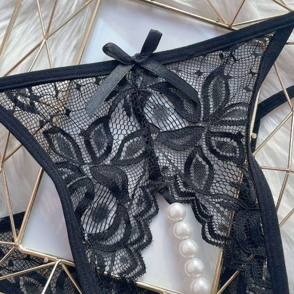 • 【Mini Queen】赤裸櫻桃 開襠褲 情趣珍珠透膚蕾絲開襠丁字褲 (3色)