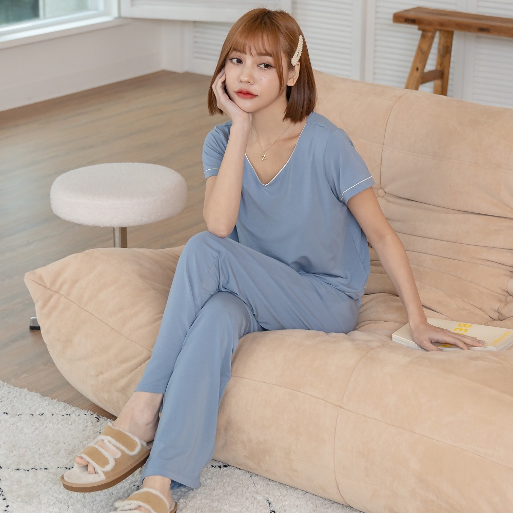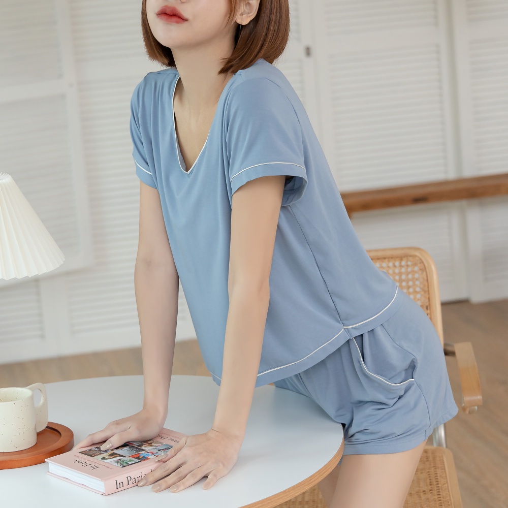 • 【Mini Queen】單件上衣 戀家妍秀|莫代爾美胸調整型睡眠內衣 柔軟舒適 居家睡衣 (北歐藍 S-4XL)