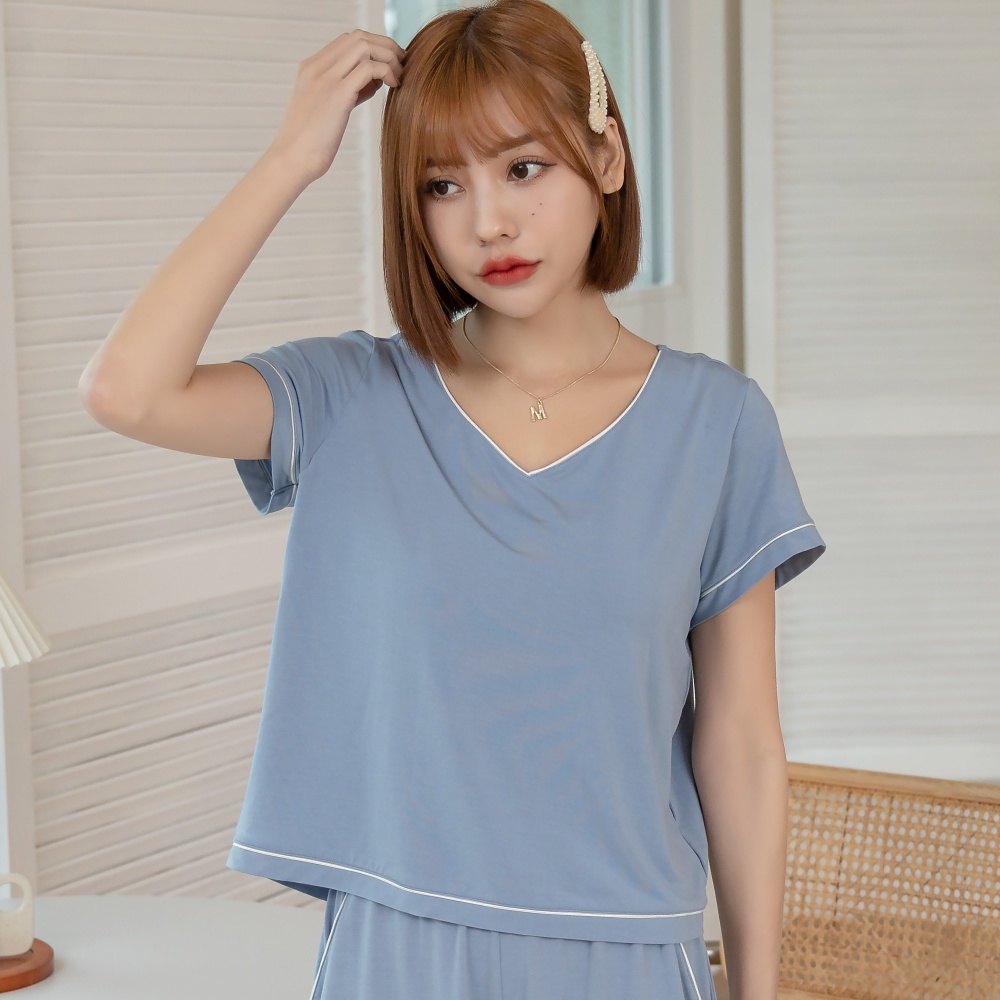 【Mini Queen】單件上衣 戀家妍秀|莫代爾美胸調整型睡眠內衣 柔軟舒適 居家睡衣 (北歐藍 S-4XL)XL|2XL|3XL|4XL|S|M|LBrasMini Queen 性感甜美內睡衣