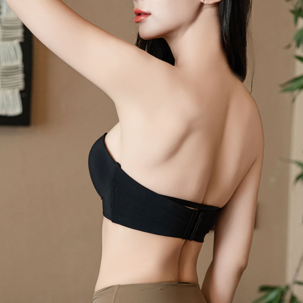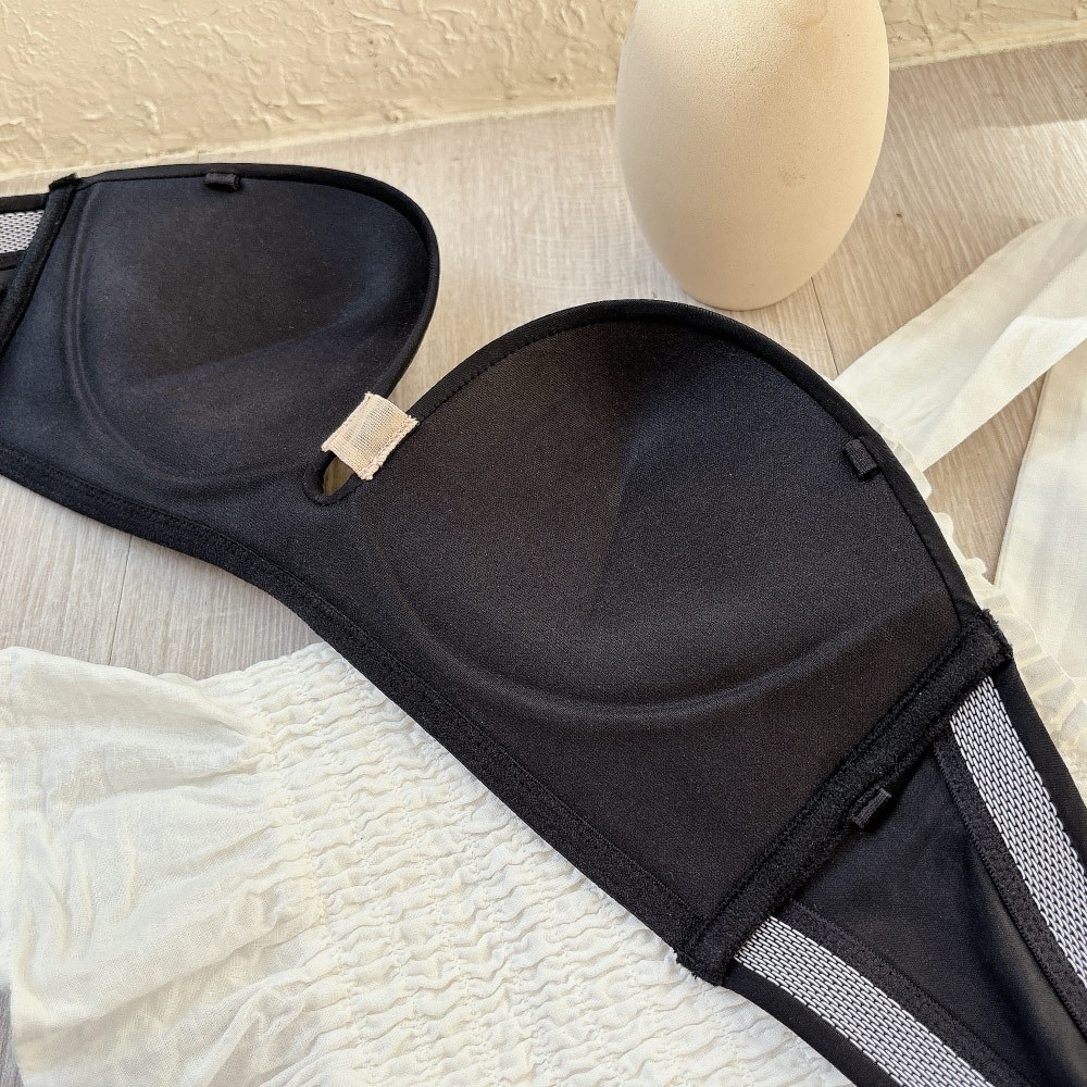 • 【Mini Queen】挺波V姐 無鋼圈集中內衣推薦 平口內衣|防滑3D牛奶絲內衣(黑色65B-90D)