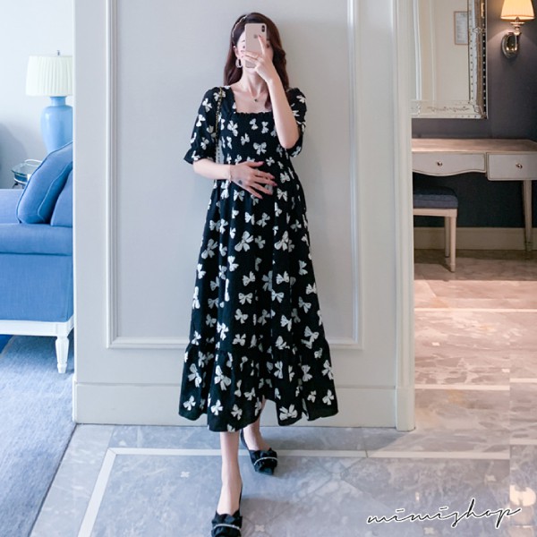 MIMI別走孕婦裝 微美夏戀 長款 優雅雪紡抓褶孕婦洋裝 長裙【P521463】長款蝴蝶結Maternity DressesMIMI別走孕婦裝哺乳衣