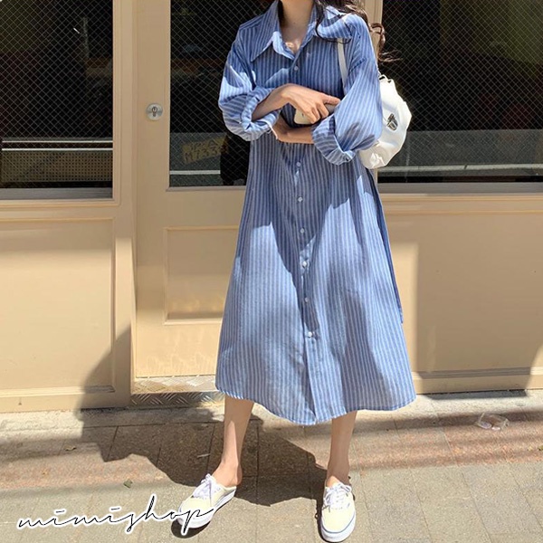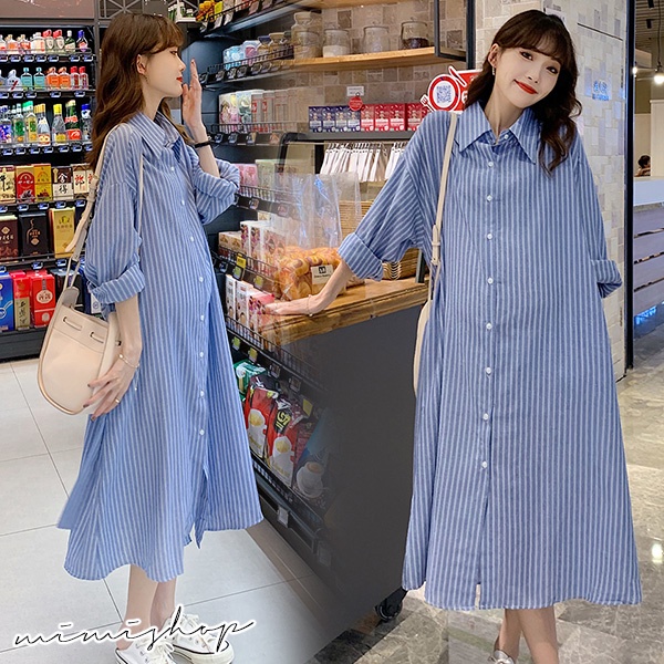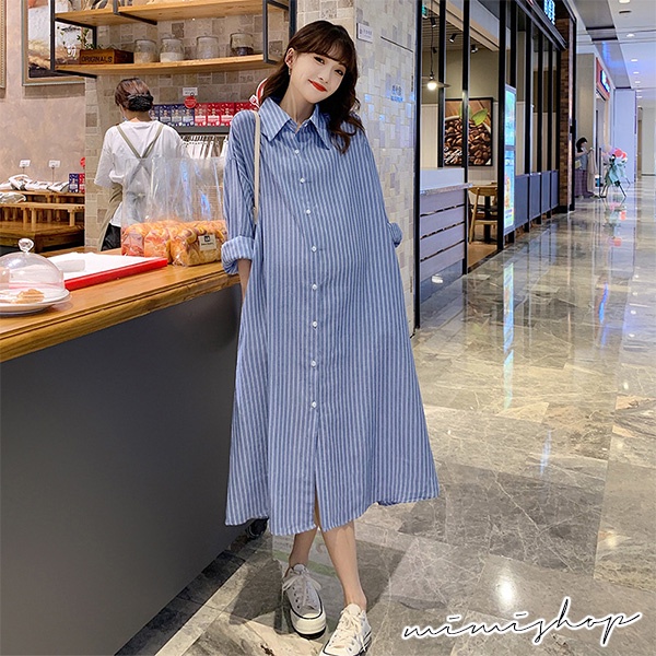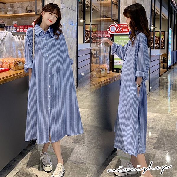 MIMI別走孕婦裝 簡單率性 寬版襯衫裙 孕婦裙 開扣哺乳衣 長裙【P521766】藍條紋Maternity DressesMIMI別走孕婦裝哺乳衣