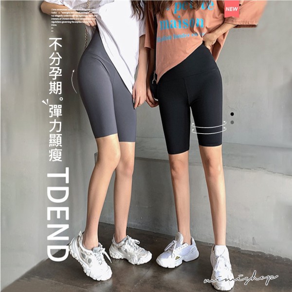 MIMI別走孕婦裝 流行好穿搭 顯瘦高彈力五分褲 瑜珈褲 孕婦設計【P61925】灰,XL|灰,XXL|黑,M|黑,L|黑,XL|黑,XXL|灰,M|灰,LMaternity BottomsMIMI別走孕婦裝哺乳衣