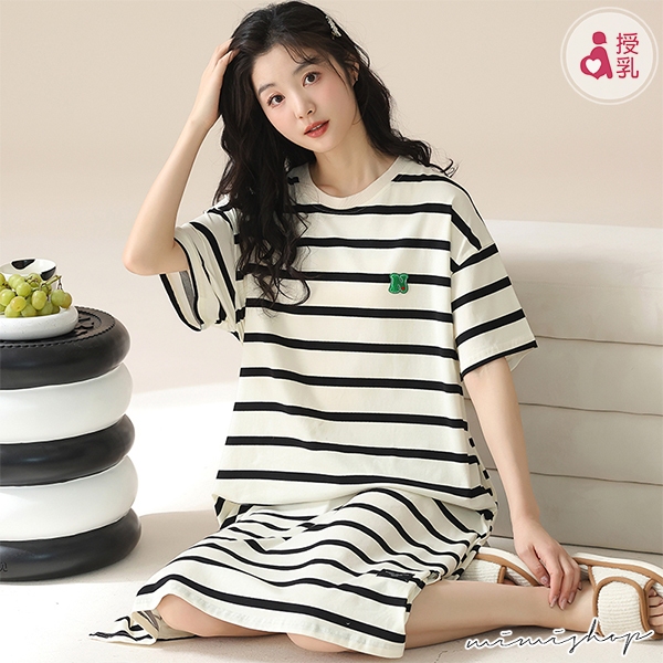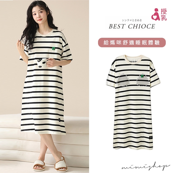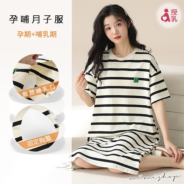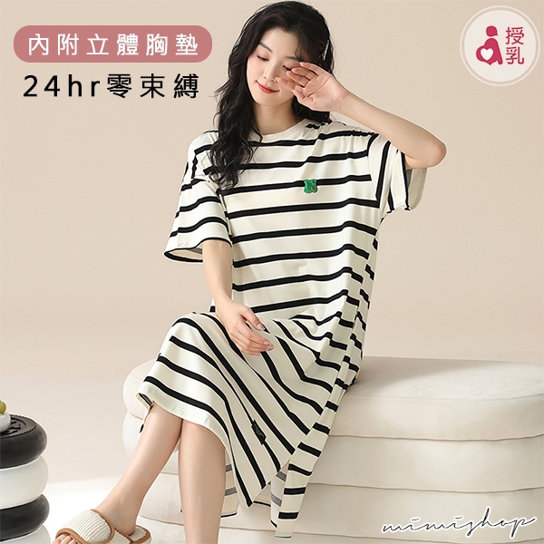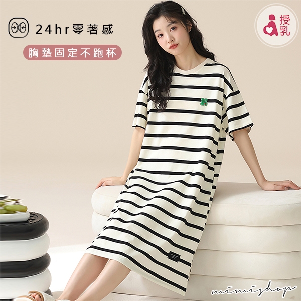 MIMI別走孕婦裝 附胸墊 字母刺繡24小時舒適棉哺乳裙 哺乳睡衣 居家坐月子【P21430】字母刺繡,FBreastfeeding WearMIMI別走孕婦裝哺乳衣