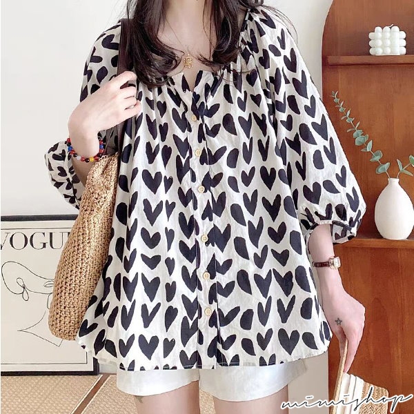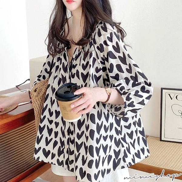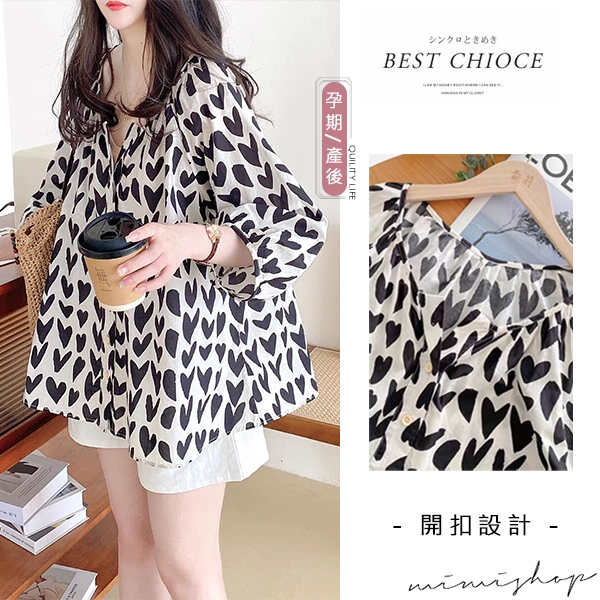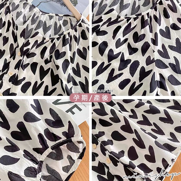 MIMI別走孕婦裝 酷甜百搭 小v領愛心寬襬上衣 短襯衫 透氣舒適【P511281】愛心,FMaternity TopsMIMI別走孕婦裝哺乳衣