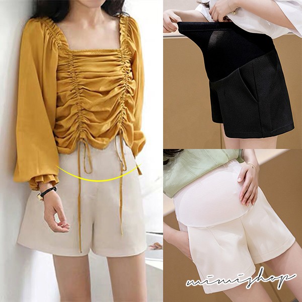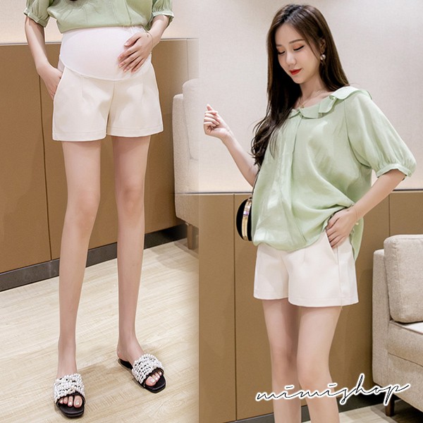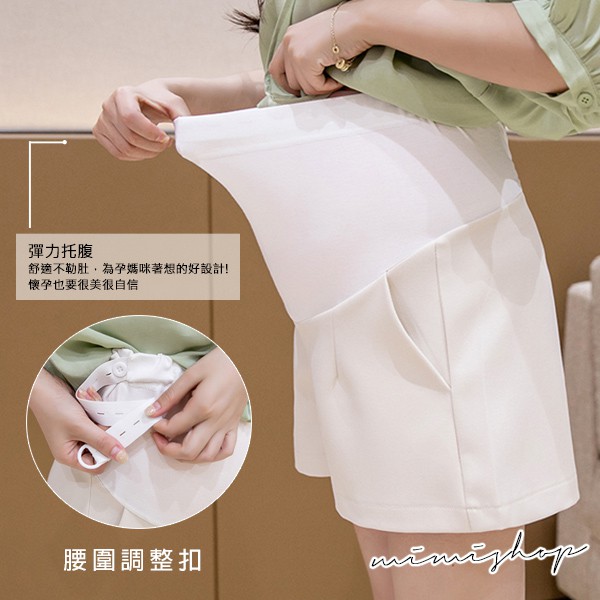 MIMI別走孕婦裝 都會俏媽咪 西裝挺版孕婦短褲 寬褲 孕婦褲【P61808】黑,M|黑,L|黑,XL|黑,XXL|杏,M|杏,L|杏,XL|杏,XXLMaternity BottomsMIMI別走孕婦裝哺乳衣
