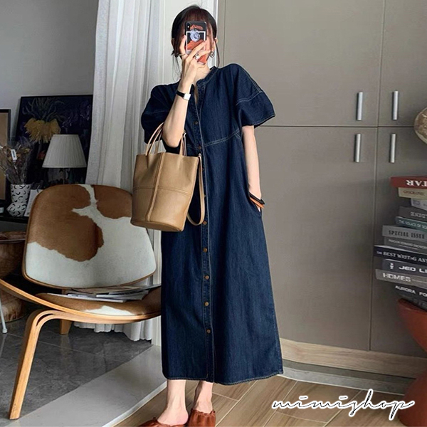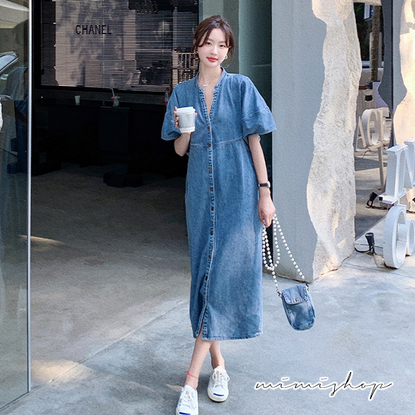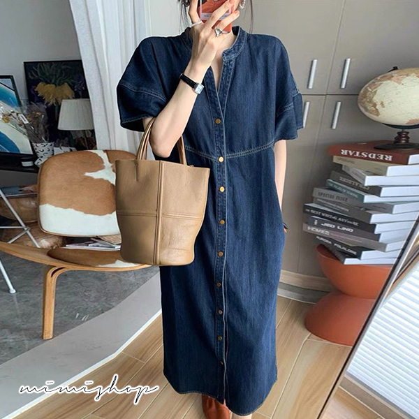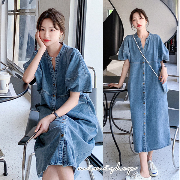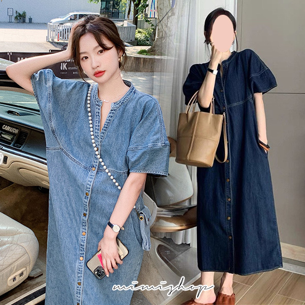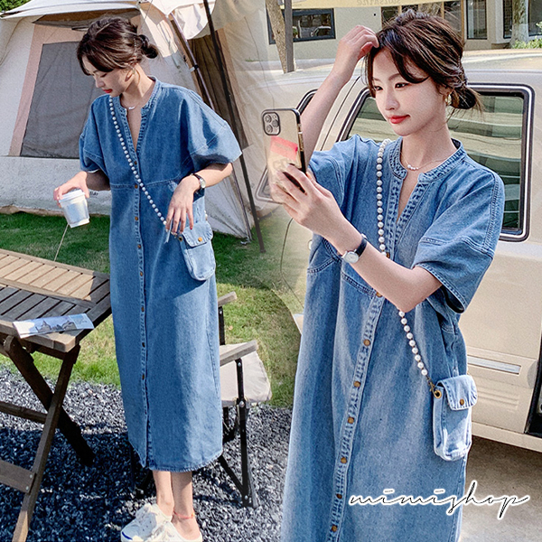 MIMI別走孕婦裝 修長剪裁 復古V領牛仔裙 孕婦裙 開扣哺乳裙【P521978】深藍牛仔|淺藍牛仔Maternity DressesMIMI別走孕婦裝哺乳衣