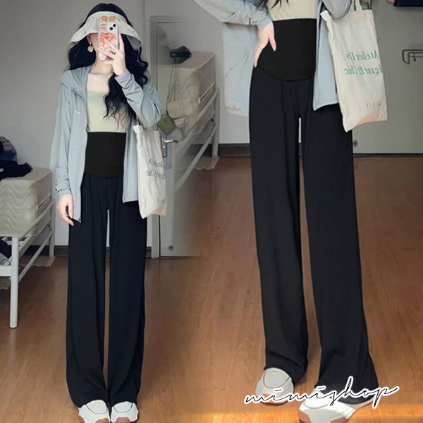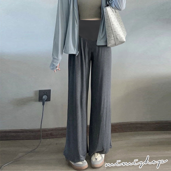 MIMI別走孕婦裝 百搭舒適 莫代爾涼感闊腿褲 孕婦褲 長褲【P62174】黑|灰Maternity BottomsMIMI別走孕婦裝哺乳衣