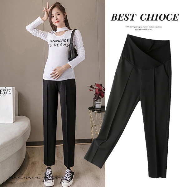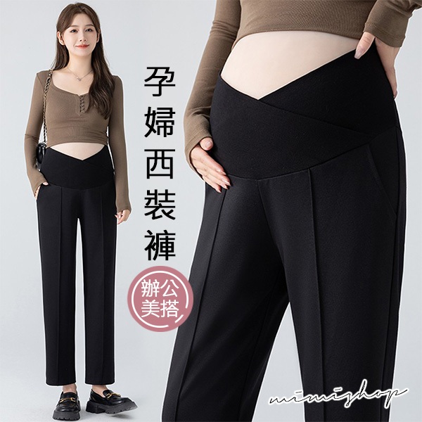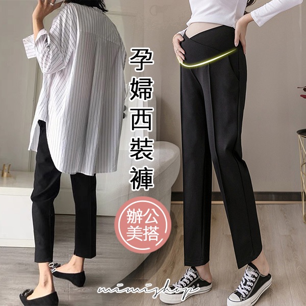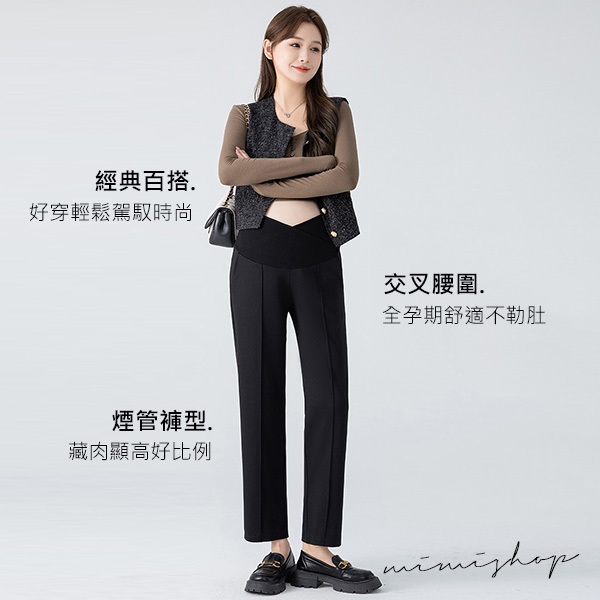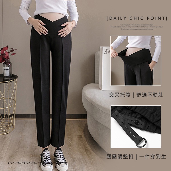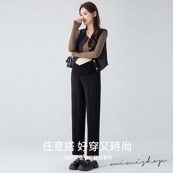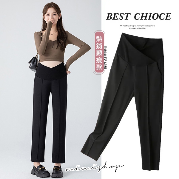 MIMI別走孕婦裝 顯瘦媽咪職業褲 孕婦褲 九分褲 托腹設計【P62224】黑,M|黑,L|黑,XL|黑,XXLMaternity BottomsMIMI別走孕婦裝哺乳衣