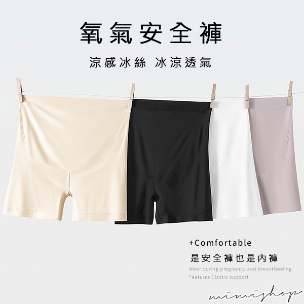 MIMI別走孕婦裝 涼感冰絲 氧氣安全褲 高腰孕婦抗菌內褲 防走光 【P71057】黑,F|白,F|膚,F|藕灰,FMaternity BottomsMIMI別走孕婦裝哺乳衣