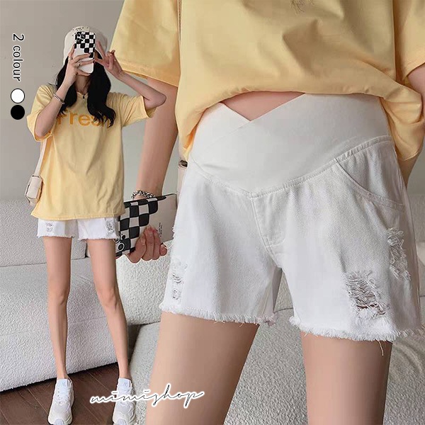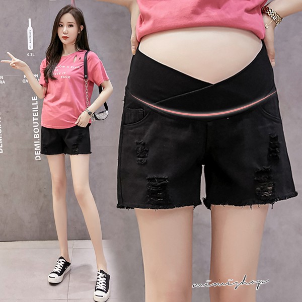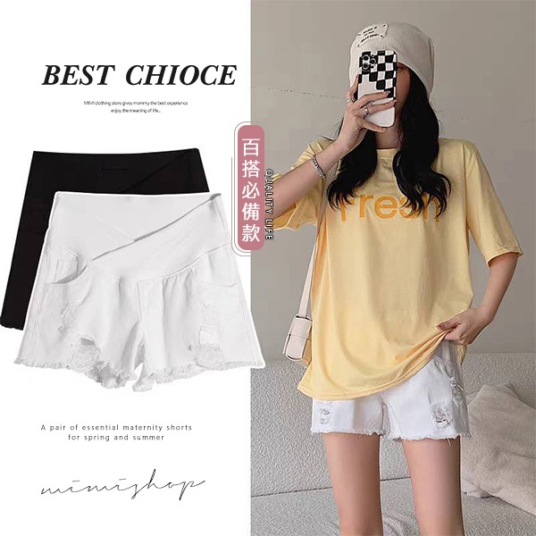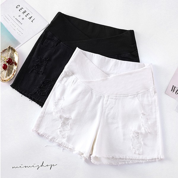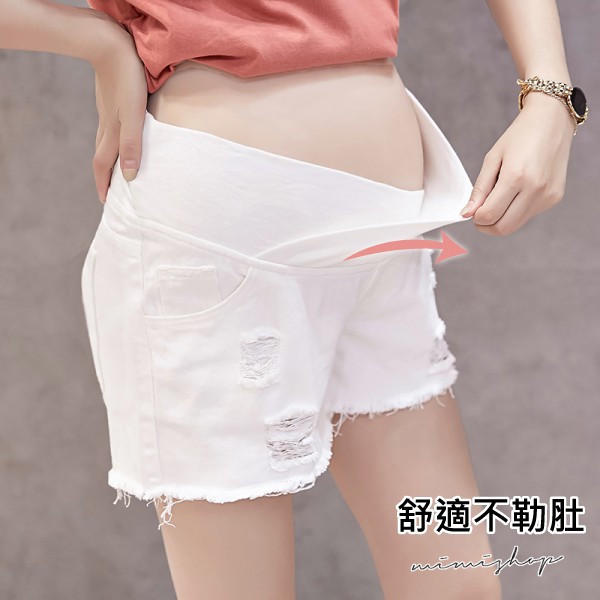 MIMI別走孕婦裝 時尚媽咪 舒適不勒肚 低腰刷破牛仔短褲 孕婦褲【P61813】白,M|白,L|白,XL|白,XXL|黑,M|黑,L|黑,XL|黑,XXLMaternity BottomsMIMI別走孕婦裝哺乳衣