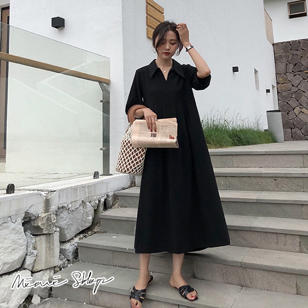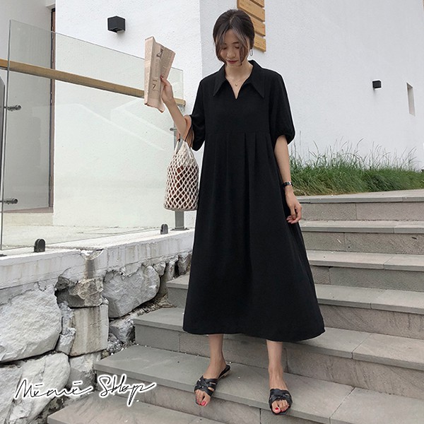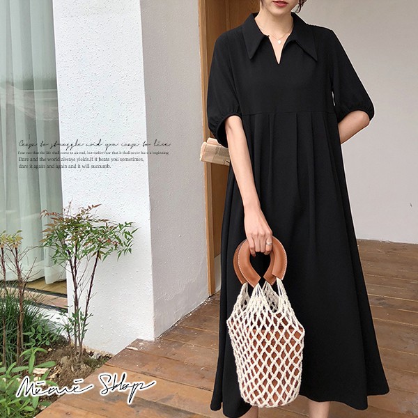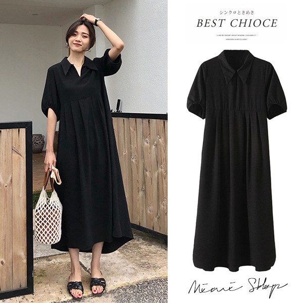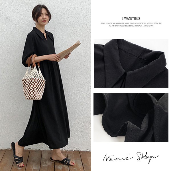 MIMI別走孕婦裝 小復古長裙 翻領雪紡連身裙 寬版長洋裝【P52862】黑Maternity DressesMIMI別走孕婦裝哺乳衣