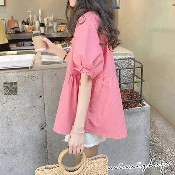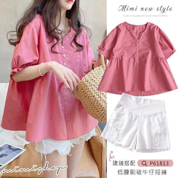 MIMI別走孕婦裝 夏日時光 好搭小V領寬襬上衣 娃娃衫【P511102】玫紅Maternity TopsMIMI別走孕婦裝哺乳衣