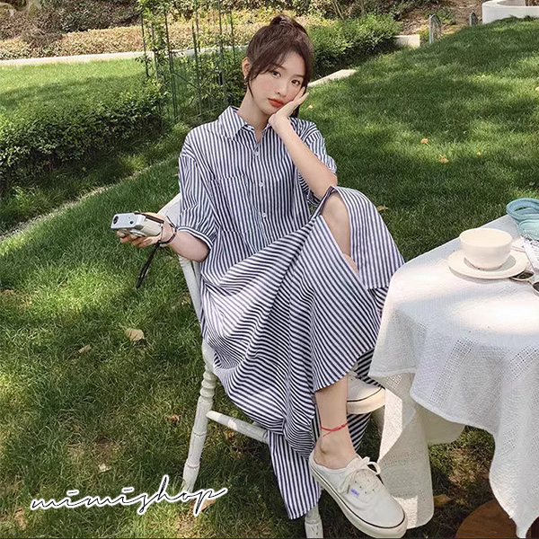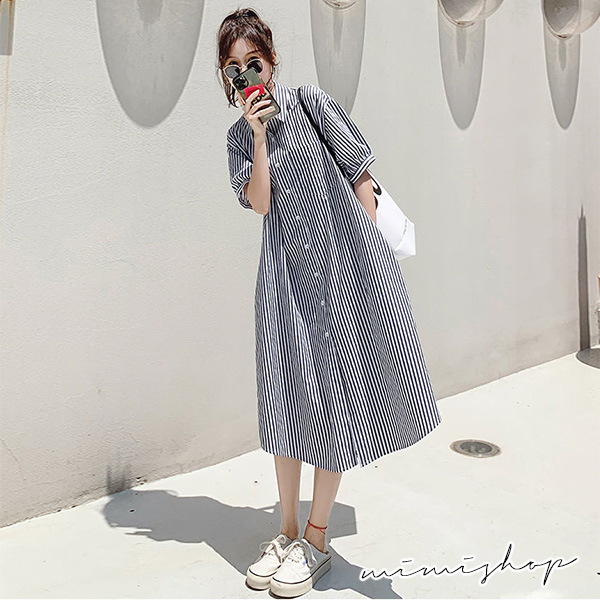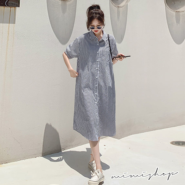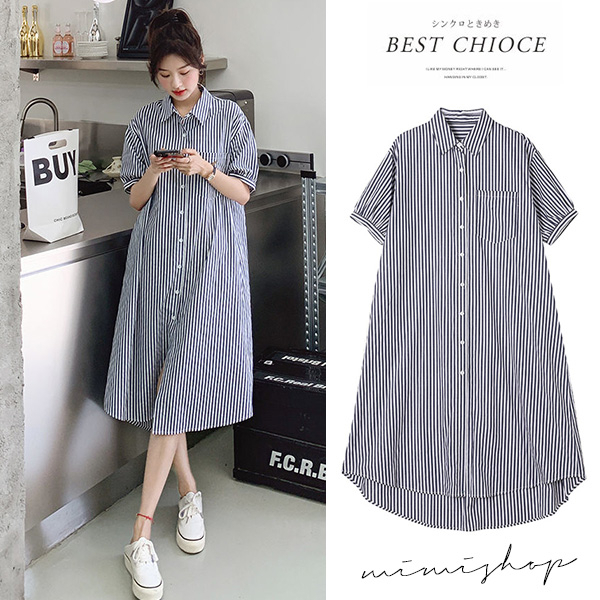 MIMI別走孕婦裝 簡約氣質 寬版條紋口袋襯衫裙 孕婦裙 開扣哺乳【P521882】條紋Maternity DressesMIMI別走孕婦裝哺乳衣