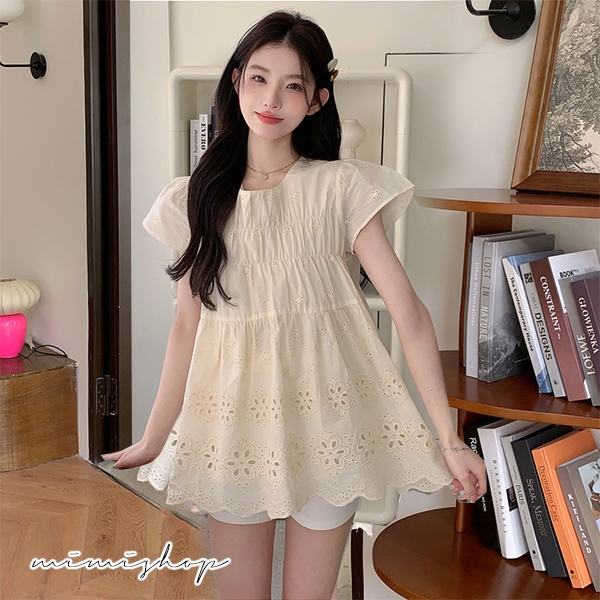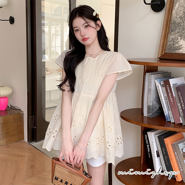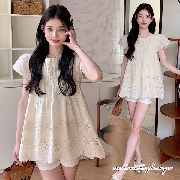 MIMI別走孕婦裝 甜美又顯白 兩件式 鏤空上衣+孕婦短褲 孕婦套裝【P31638】杏上衣+白褲Maternity SetsMIMI別走孕婦裝哺乳衣