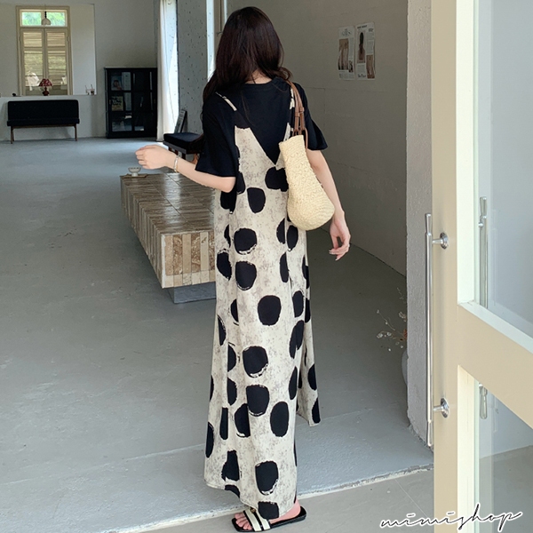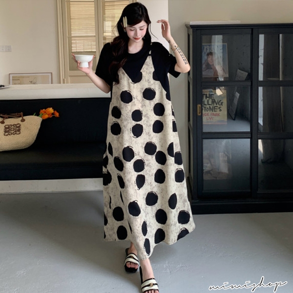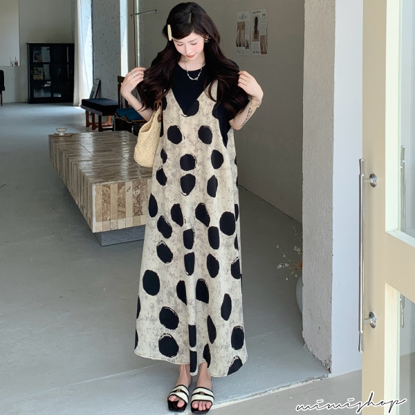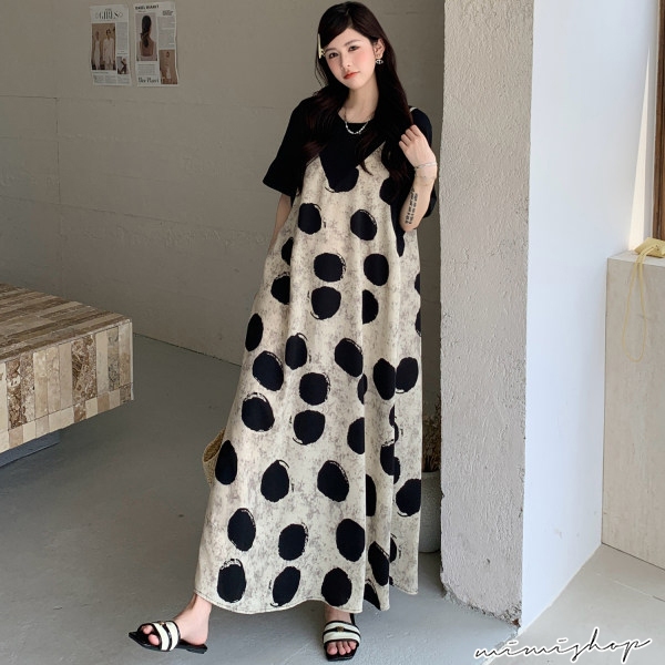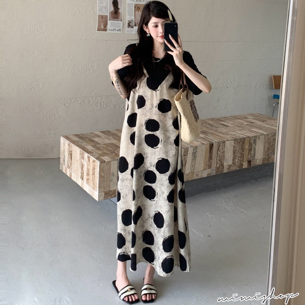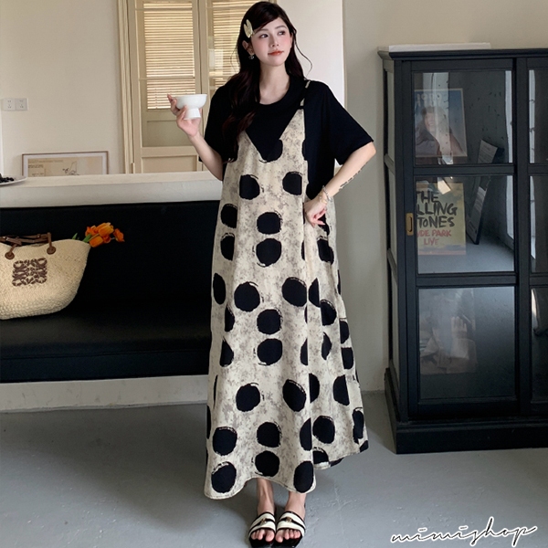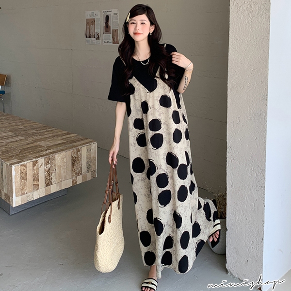 MIMI別走孕婦裝 渡假風 假兩件波點雪紡連身裙 孕婦洋裝 長裙 【P522295】波點,FMaternity DressesMIMI別走孕婦裝哺乳衣