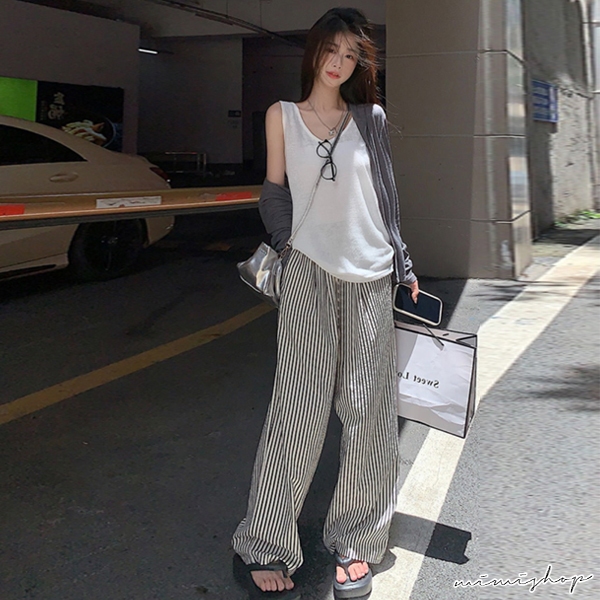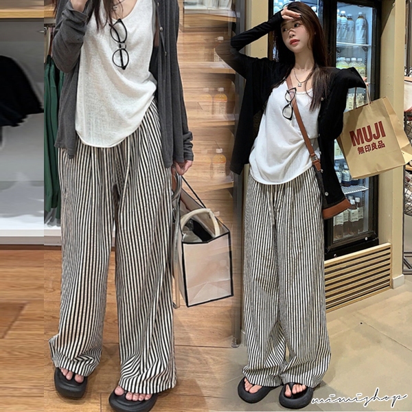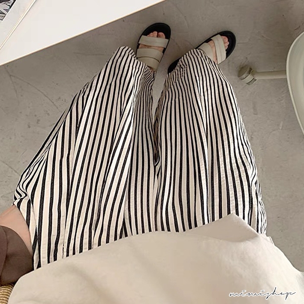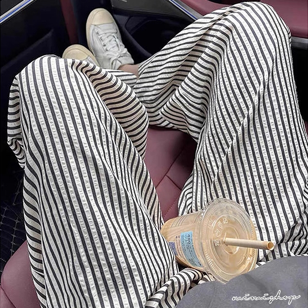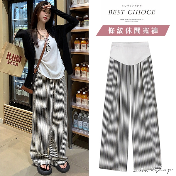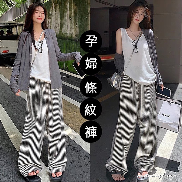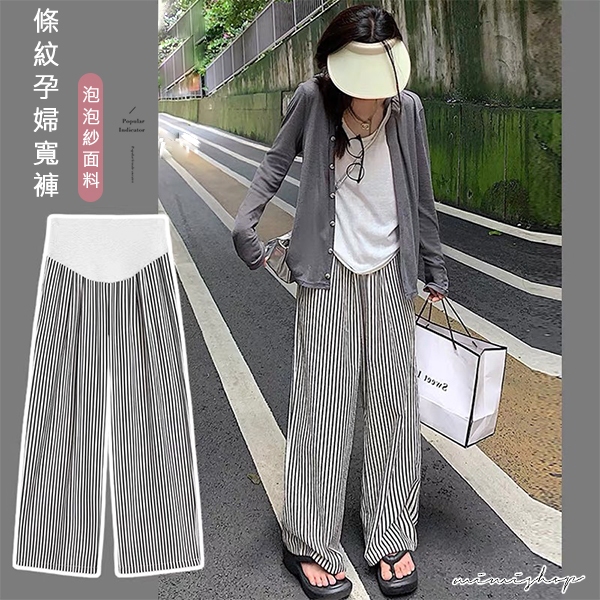 MIMI別走孕婦裝 日常百搭 透氣泡泡紗條紋直筒寬褲 孕婦褲 休閒褲【P62348】直條紋,M|直條紋,L|直條紋,XL|直條紋,XXLMaternity BottomsMIMI別走孕婦裝哺乳衣