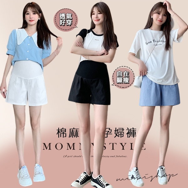 MIMI別走孕婦裝 好感輕呼吸 透氣棉麻孕婦短褲 舒適不勒肚【P62352】白,M|白,L|白,XL|白,XXL|藍,M|藍,L|藍,XL|藍,XXL|黑,M|黑,L|黑,XL|黑,XXLMaternity BottomsMIMI別走孕婦裝哺乳衣